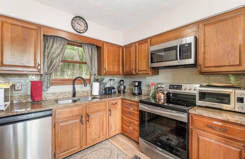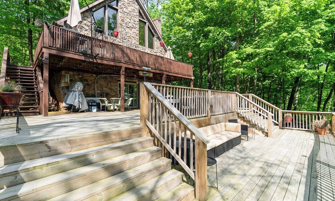 This mountain home has everything to offer! Newly renovated kitchen, granite counters , stainless steel appliances, dining room, great room, family room, game area, mini kitchen and bathrooms. Amazing deck views and privacy! The home is fully equipped. Brand new big screen smart TVs in communal areas. House comes with a full size ping pong table and board games. Beds for 10!! Situated just 3 mins from Ski Liberty Resort and Golf Course the location is perfect for avid golfers and skiers!!