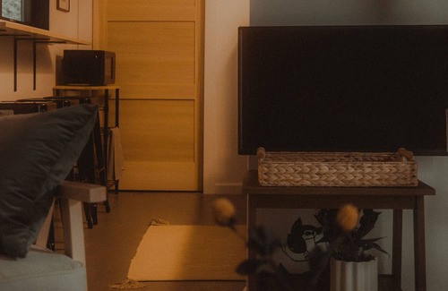 Inside you will find a small, but surprisingly accommodating living area with a smart TV, board games, and a small collection of books. Enjoy unique decorations featuring local artists such as Allison Maggard and even a few extra special pieces imported from France!