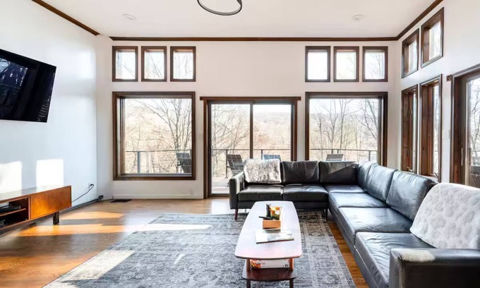 The Nest At Swiss - Lakefront Luxury In The Catskills is located in Jeffersonville. The Nest At Swiss - Lakefront Luxury In The Catskills provides accommodation, featuring Security/Safety, Wellness Facilities, Internet, among other amenities. This House features Security/Safety, Wellness Facilities, Internet, to make your stay a comfortable one.