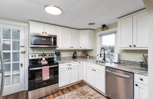 KITCHEN: stove, fridge, sink, microwave, dishwasher, toaster, electric tea kettle, coffee maker (traditional drip), Keurig