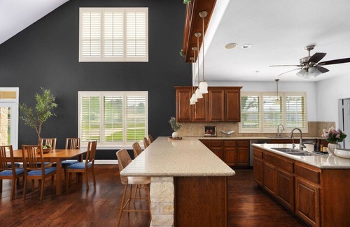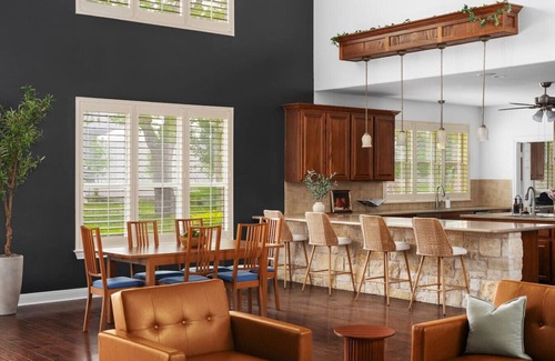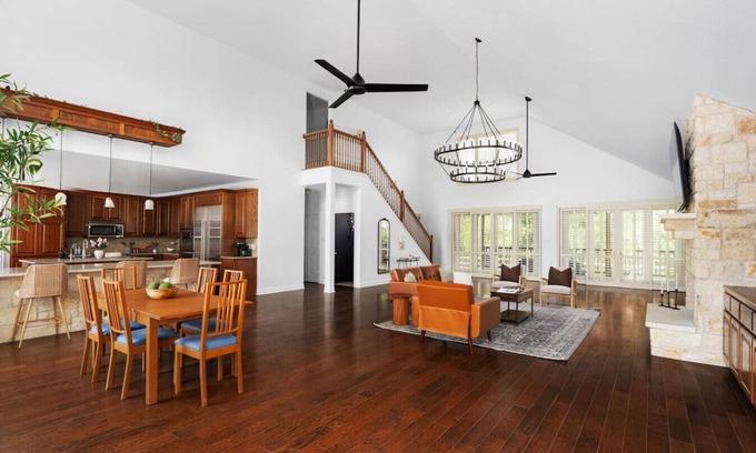 Welcome to the Nest on Brushy Creek — your perfect 3-acre retreat for large groups! Enjoy a huge chef’s kitchen, colorful bedrooms, and wide-open outdoor spaces where cows roam. Perfect for family gatherings, celebrations, and friend trips! Minutes from the Haute Spot music venue, H-E-B Center, IKEA, and the best restaurants, bars, and shops. Peaceful country living with unbeatable city access — Designed for gatherings, built for connection!