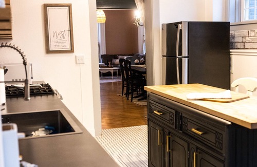 Welcome to our charming 1860 brick Italianate style home on Pucker Street, nestled in the heart of the historic Marion, Iowa. This two-story beauty is a perfect blend of timeless elegance and modern comfort, offering a unique and unforgettable stay for your getaway.