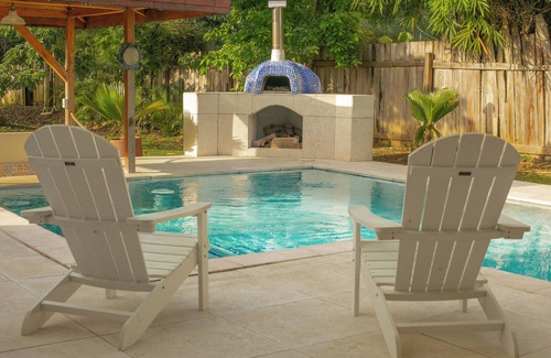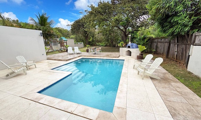 Welcome to The Nest, an idyllic tropical retreat in Tobago, located near No-man's land, Mount Irvine, Pigeon Point, & Buccoo beaches. This 5 bedroom house promises relaxation & adventure. Explore the island by car, scenic walks & trail bikes, or relax by the pool surrounded by the lush large garden. Samaan Grove is a Gated Safe Community, Kid-friendly, delight in the swing set. Discover the hidden gem, to unwind & soak up the sun. Warm Hosts with Insider tips with ensure an unforgettable stay!