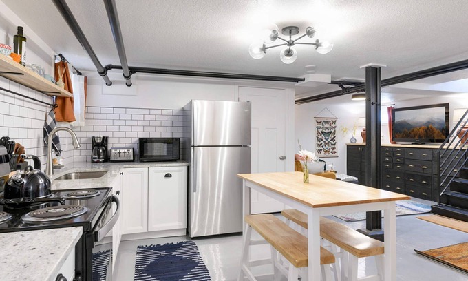 Enjoy the privacy and tranquility of our basement apartment in our owner-occupied triplex, which features a comfortable queen-sized bed, a fully equipped kitchen and a private bathroom. You'll also have access to high-speed Wi-Fi, a flat-screen TV with streaming capabilities, and a cozy seating area. The laundry room is shared with the two other units, and is located just outside of this studio apartment for easy access.