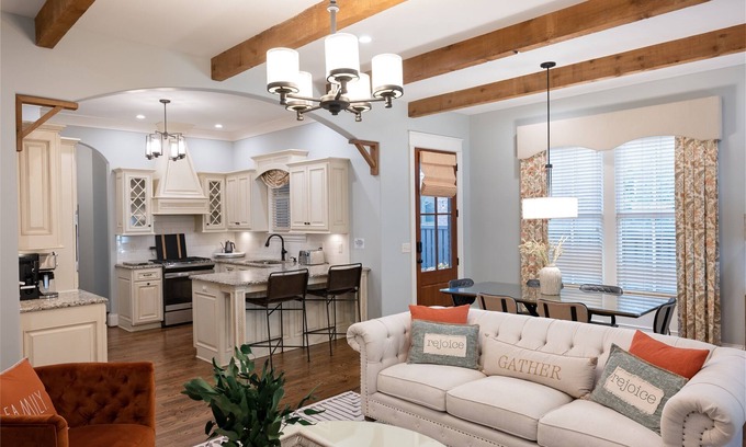 From the moment you walk in, you’ll know you’ve arrived somewhere special. Soaring 10-foot vaulted ceilings, warm ambient lighting, and designer-curated décor set the stage for a stay that’s as stylish as it is comfortable.