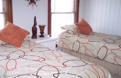 Reserve individual rooms with private baths - or the whole Inn (5 bedrooms) is available as one rental unit. Room details: Room 1 has a full size bed upstairs and a private bath downstairs; Room 2 has a queen size bed upstairs with a private bath downstairs; Room 3 has two single beds upstairs and a private bath downstairs; Rooms 4 and 5 have a queen and full size bed upstairs, respectively, and share an upstairs bathroom. (rented if guests are traveling together) Guests are required to bring their own bedding and towels.