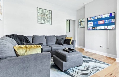 What are you waiting for?? This newly listed beautiful, charming home is great for anyone, especially those traveling for work or leisure and small families visiting Columbus. You will be close to a lot of things when at this centrally-located home which is about 4-5 minutes from the heart of Downtown Columbus. We do not allow parties or large events. The Common Area includes a: • Cozy living room area for relaxing • Smart TV (log into your apps such as Hulu, Netflix) • Spacious couch to recline and relax after a long day out • Half bathroom located downstairs The Kitchen comes with: • A Mini Coffee Station to enjoy a hot cup of coffee • Fully Stocked Cabinets (with dishes, pots, pans and utensils for your stay) • Microwave, dishwasher, stove/oven, fridge the essentials you’ll need • Dining room table for eating or working Each Bedroom features a: • Queen Sized Bed to relax and recline • Smart TV (log into your apps such as Hulu, Netflix) • Direct access to the bathroom w/ bathtub • Closet for storage • Bed stands • Portable air conditioners for added cozying if needed • Washer and dryer for your use • Fenced backyard area for use with outside seating • Gas grill at the backyard Other things to note Nearby attractions and businesses: 4 mins to Downtown Columbus 15 mins to CMH airport 10 mins to The Ohio State University & Stadium (OSU) 8 mins to The Ohio State University Hospital 5 mins to Crew Stadium 7 mins to The Convention Center 5 mins to Nationwide Arena 6 mins to COSI and Otherworld 17 mins to Easton Town Center (Mall) 17 mins to Polaris Fashion Place (Mall) Most of your purchase needs can be met within a 5-minute drive. The property has parking at the back for up to two cars. Please park well. There's also free street parking in front, at the other side of the road.