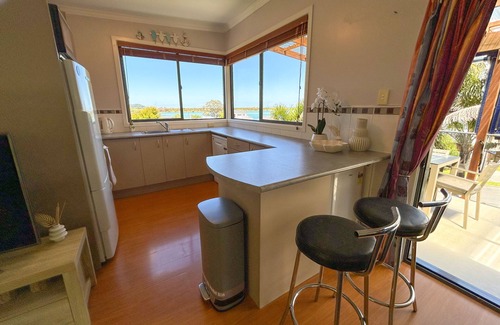 This 3 story home provides access to the two upper floors. The Upper floor contains full kitchen with fridge, dishwasher, oven and Ocean views, windows which celebrate the wide Ocean view and open out onto covered outdoor dining area with bbq and ample shade and shelter so you can enjoy in all weather. Generous comfortable lounge suit which will fit the whole family. A separate toilet upstairs and bedroom with double bed, external access and ample light and views.