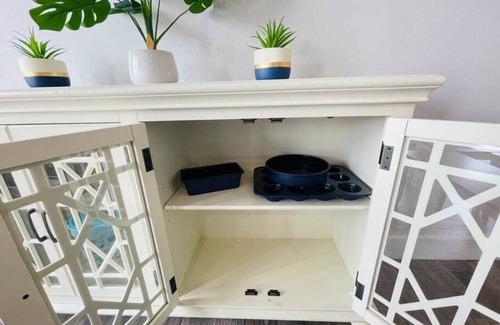 The Oasis is located in the heart of Eufaula where you are just steps away from the lake, restaurants, a convenience store, a liquor store, and family fun. The Oasis is a two bedroom townhouse that can accommodate up to 6 guests. The master bedroom has a Cal. King bed and has a balcony that overlooks the cove. The second bedroom has a bunk bed with a full over two twins. The Oasis has a stacked front load washer & dryer.Your family will be close to everything when you stay at this centrally-located place.