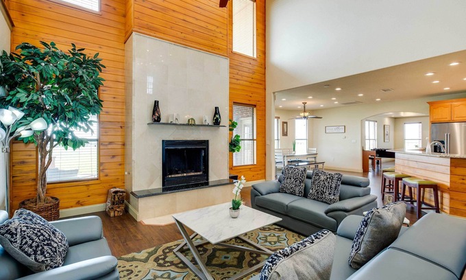 INDOOR LIVING: Smart TVs, multiple living rooms, fireplace, theater room, pool table, foosball table, piano, dining tables, board games, ceiling fans
