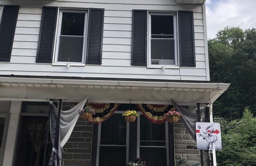Beautiful full house rental with 3 bedrooms and 2 full baths. One bath is upstairs and one is downstairs. There is a living room equipped with T.V.., D.V.D. player, internet, Alexa device and air-conditioning. There is a dining room and kitchen, which is fully equipped with cookware, stove, microwave, dishwasher, Keurig machine, dishes/China, if you wish to use it. There is a COFFEE BAR in the kitchen. There are 3 bedrooms upstairs each with air-conditioning, towels, sheets, blankets and pillows. There is PRIVATE PARKING on the premises offering 3 parking spots. House was just finished with fresh paint and Victorian furniture and decor. There is a barbecue and fire pit with furniture in the private yard. There is a lock box on the door for self-check in/out. The second floor has a picture wall of Jim Thorpe past and present. Walking distance to all bars, restaurants and historical attractions!