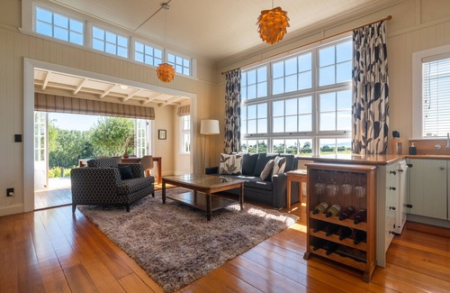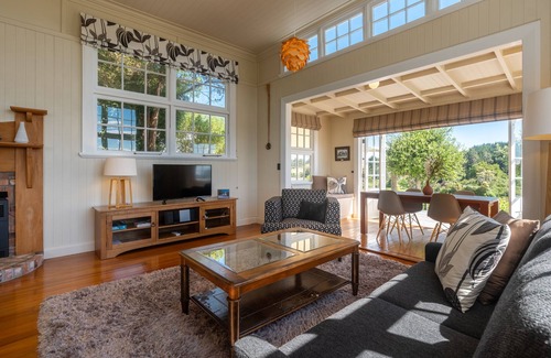 The cottage's former existence as an old New Zealand schoolhouse is still recognisable from the outside. A lot of effort has been put in to ensure that the interior is light and airy but still offering the character of yesteryear. You will even find the original school bell hanging at the front door.