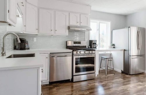 Welcome to your home away from home in the beautiful Keweenaw! This fresh, modern, and comfortable full-house rental features 3 bedrooms and 1.5 bathrooms, perfect for families or small groups. The gourmet kitchen is fully equipped with a gas range and center island, flowing seamlessly into the dining area with a coffee bar and cozy living room thanks to the open-concept layout.
