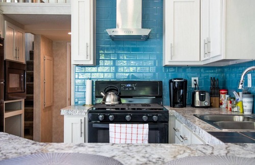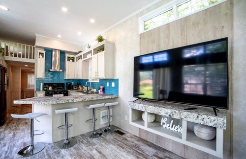 Experience the trendy Tiny House living for a day or a few days. Whether you are travelling across the country with a stop in Indy, a getaway, or a staycation. This is a brand new, trendy, spacious and elegant Model Park Home. The Tiny home is 398 SF and has all the amenities of a full house, plus high ceilings, and a loft that can sleep 1-2 extra people or can be used as a play area. Ready for something different and exciting? A getaway, pool house or staycation? Parties are not accepted.