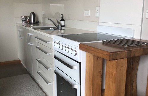 The main unit, suitable for a couple, has a large separate bedroom with a king sized bed with a generous bathroom next door.