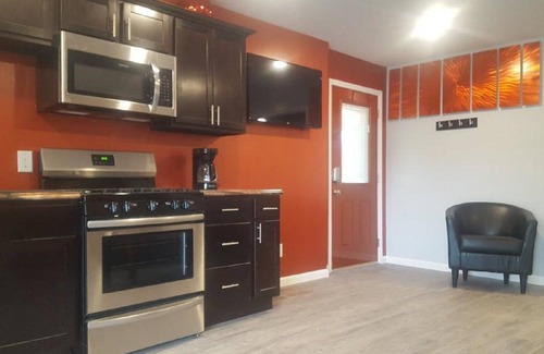 The Overlook features a kitchen that is fully equipped with all the essentials such as microwave,pots & pans, coffee maker, Coffee, Creamer, Sugar, toaster, blender,slow cooker and your basic kitchen items to cook a nice meal.