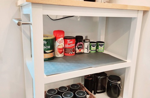 Coffee bar: 12-cup coffee maker to meet group needs. Tea bags for tea lover and instant coffee to rock your busy morning!