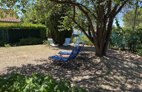 On a plot of 3000m2 fenced and closed by an entrance gate common to the 3 accommodations, we offer 3 small independent houses of 40 m2 with a covered terrace of 15m2. Table and 4 chairs to enjoy your garden space of approximately 200m2 where you can sunbathe and relax. (The green gîte garden is fenced).