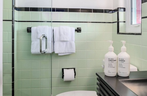 Our commitment to a unique experience shines through in the professionally designed interior that harmonizes vintage charm with modern amenities. Immerse yourself in its ambiance and the charm of restored bathroom tiles and original design elements. We've preserved all original terrazzo flooring, while enhancing it with quality furniture, ensuring a blend of nostalgia and contemporary comfort you certainly won’t find anywhere else.
