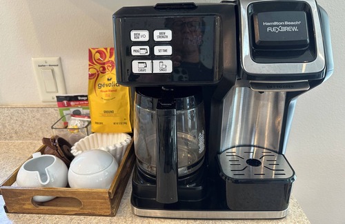 Office / Bedroom - Futon couch pulls out to full sized bed, extra large Smart TV, and built-in office with computer and printer. Room can be used as a bedroom or a privite TV room.