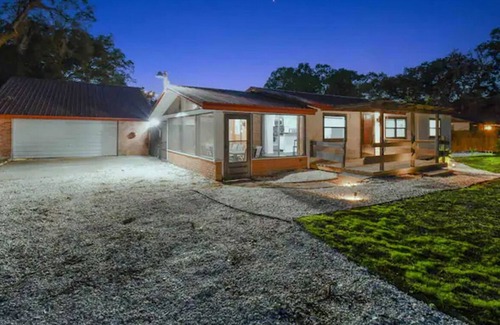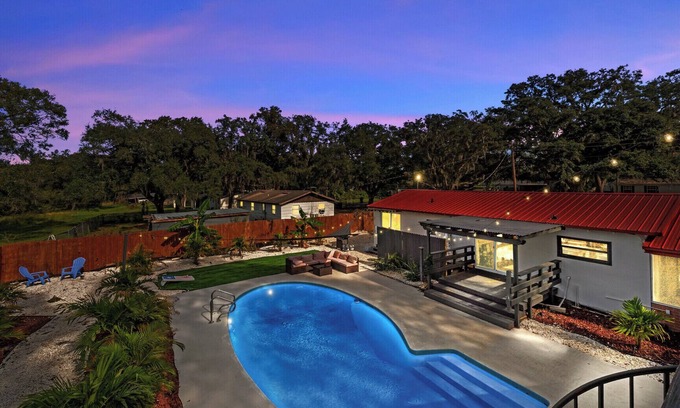 At the Palms Oasis stay 14 minutes from downtown Tampa in a tropical pool home! This getaway feature a completely private backyard for you to enjoy what Florida has to offer. 8 min drive to both the Hard Rock Casio and Midflorida amphitheater, 15 to Busch Gardens and 25 to Tampa International Airport. With plenty of space to spread out this property has a beautiful pool, areas to lounge in the sun under the palm trees, 3 separate sleeping areas (Main house, a Loft Studio and Private Cottage Apartment) and both Indoor and Outdoor dining areas. Nestled in Seffner, this delightful house offers a tremendous stay for guests. With 6 queen beds and 3 sofa beds spread across 4 bedrooms, there's plenty of space for everyone to relax. The 3 bathrooms come equipped with a hairdryer for added convenience. In addition, guests can enjoy the cozy living room with 2 sofa beds for extra sleeping space. Enjoy your time in the Tampa/St Pete area at our quiet pool oasis house.