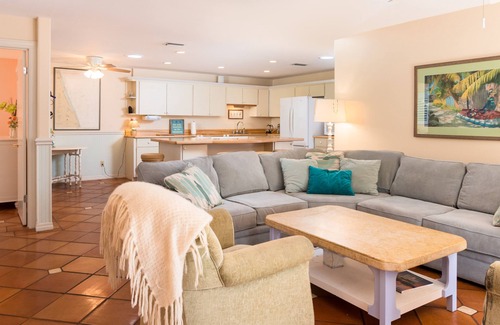 There is a second living room facing the ocean that easily converts with twin beds to a semi-private third bedroom.