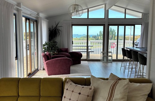 Best-rates for the Papamoa Beach house starts from $548 per night with includes Pet Friendly, TV, View, Ocean View, Security/Safety, Wellness Facilities, Internet, Kitchen, Oceanfront, Bedding/Linens, Fireplace/Heating, Barbecue/Outdoor Cooking, Child Friendly, Laundry StayAndPlay offers fully equipped golf villas, golf hotels, golf resorts, luxury golf cabins, and exclusive golf retreats, making it easier than ever to find your perfect golf escape — ideal for families, peaceful getaways, or pet-friendly retreats with the whole crew.