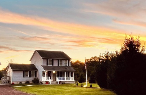 Welcome to your perfect getaway. Nestled on the peak of the mountain, north of Jim Thorpe. This spacious 3 Bedroom, 3 bath retreat, comfortably sleeps 8, making it ideal for families or friends. Enjoy stunning sunsets from the hot tub or stargaze by the fire pit. Make use of the fully equipped kitchen to make meals. Whether you're looking to relax or explore, this home offers the perfect blend of comfort and convenience. Experience the beauty and tranquility of historic Jim Thorpe and beyond.