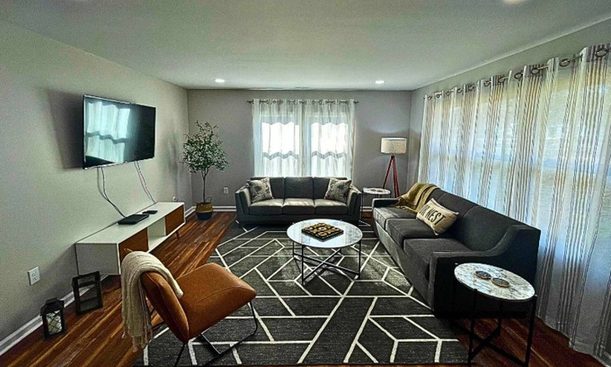 Whether you're planning a weekend trip or a longer stay, this house is a perfect choice. With a spacious 3 bedroom 2 1/2 bath that comfortably sleep 8, you'll find, The Penny Getaway, is the perfect place to stay. With a full size washer and dryer, you won't have to worry about not packing enough clothes. The island in the kitchen is great to have the children sit around while you cook in our kitchen that is filled with essential cooking supplies. It's perfect for city life without the city.