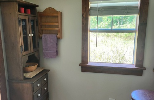 Enjoy solar-powered comfort and taste the off-grid lifestyle with rainwater washing areas, a propane cooking set-up, an outdoor composting toilet and sink, fire pit, woods and a creek to explore. Just a short drive to lots of hiking, climbing, and adventuring.