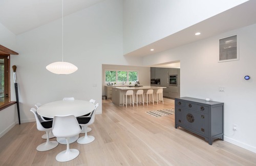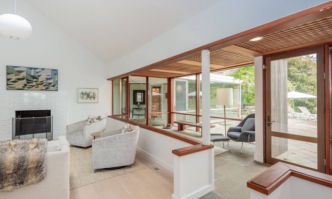 Newly renovated with modern furnishings, a cook's kitchen and beautiful sight lines. If you thrive in a clean and bright environment and love modern architecture, you will adore this house. Design features created by famous architect Fred Stelle for the original owner, a writer for Mister Rogers' books. The house is currently owned by a designer and former gallery owner.