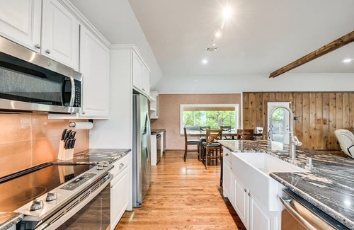 Lake getaway on one actors! This spacious 2 bedrooms 2 bathroom house offers a large living and dining spaces with a beautifully updated kitchen! 2 covered porches for outdoor living area and grill. Come make memories with your family or friends. Take it easy at this unique and tranquil getaway. Enjoy swimming, fishing, or a family picnic. Large open lot, boat dock, and lots of outdoor space! Note: Property does not have WiFI.