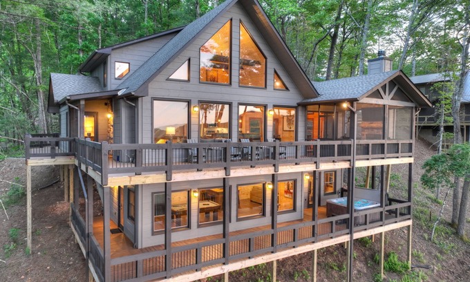 Welcome to your dream mountain getaway in Blue Ridge, Georgia! This luxurious 4-bedroom cabin is perched atop the picturesque Blue Ridge Mountains, offering breathtaking views of the surrounding wilderness. Nestled in the coveted Aska Adventure area, this cabin is a haven for outdoor enthusiasts to explore hiking trails, embark on kayaking adventures, or simply immerse yourself in the tranquility of the mountains or for those seeking the ultimate in relaxation and comfort.