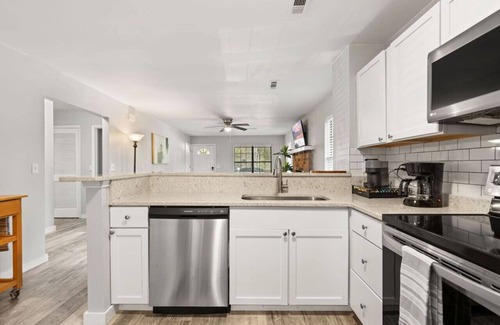 This spacious 2-bedroom, 2-bathroom home offers an open living area and is designed to comfortably accommodate up to four guests. Both bedrooms feature luxurious king-sized beds for a restful night's sleep. The fully equipped kitchen includes modern appliances and all the essentials you need for cooking meals. Enjoy high-speed WiFi, a smart TV, air conditioning, and the convenience of an in-unit washer and dryer. Guests will also have access to the clubhouse, which features a pool and gym for added relaxation and recreation. Conveniently located, Charleston International Airport is just 15 minutes away, Boeing is a 20-minute drive, and the Charleston World Trade Center is about 25 minutes from the property. The vibrant Downtown Charleston is also just 30 minutes away, making this home an ideal spot for both relaxation and easy access to key destinations.
