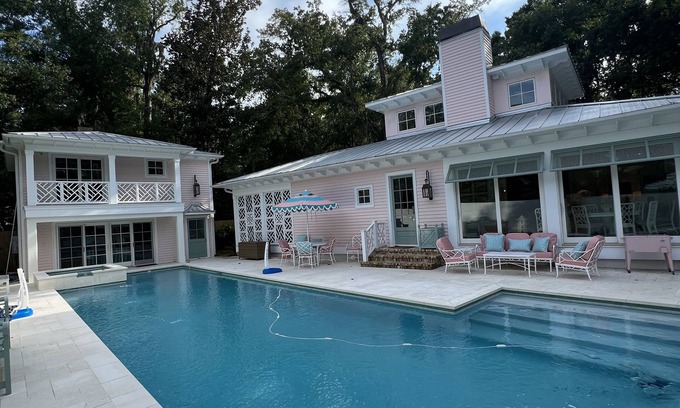 This newly renovated and professionally decorated, Bahamian Style Pink House is located less than a mile from The Grand Hotel and just steps from the shores of Mobile Bay.