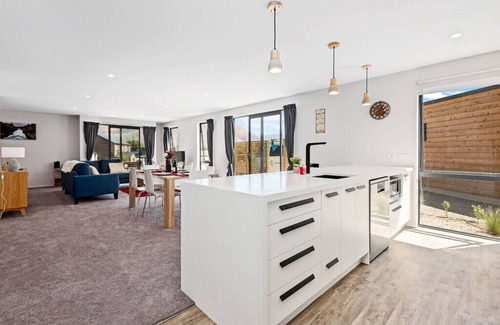 You'll be in holiday mode in no time, with well appointed open plan living, a spacious kitchen and a breakfast bar which lends itself well to family brunches. Head outside and enjoy a classic kiwi BBQ and al fresco dining, or cosy up on the couches indoor and turn on the heat pump. This home has everything you need for a comfortable Wanaka holiday.