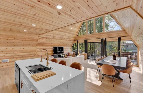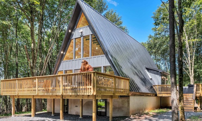 Welcome to the Pocono Dreamhouse - A Modern A-Frame Cabin with Lake Access! Escape to the serene beauty of the Poconos and indulge in a stay at the Pocono Dreamhouse, our luxurious A-frame cabin designed for relaxation and adventure. Nestled among towering trees and just steps away from a pristine lake, this cabin is your ultimate retreat for a memorable getaway.