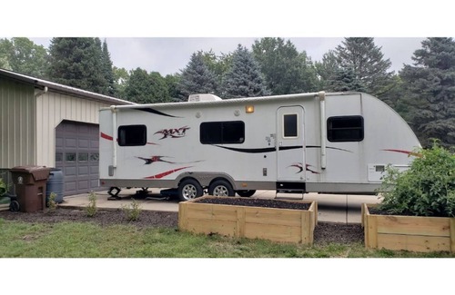 Fully equipped RV is parked in the driveway of our Pool Barn. RV sleeps 5, has bath with shower, stove, microwave, heat & air conditioning, & running water all year. We are located minutes from the sand beaches of Indiana Dunes on Lake Michigan. Hiking in the Dunes National Park along the Little Calumet River and the historic Bailley homestead is only 1 block away. You may also use our large heated pool, hot tub, grill, campfire, and playground areas too!