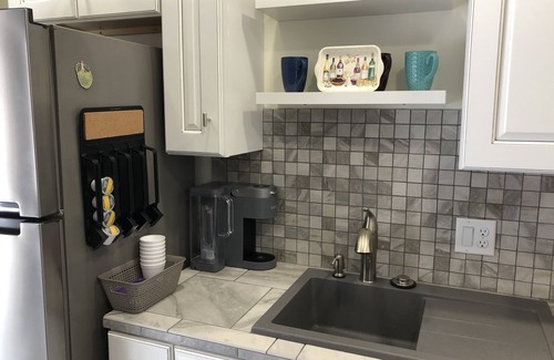 Newer Stand Alone studio with all amenities. King bed, double bed/lounger/sofa WITH usb PORTS, recliner, kitchen, bath with walk in shower, washer & dryer. Nightstand lamps with usb ports 2 private outdoor areas, seasonal pool open approx May through September (weather permitting) and fire pit! PLUS + Locked area for your bikes. 5 minutes to airport, grocery store and hospital. 15 minutes to wine country.