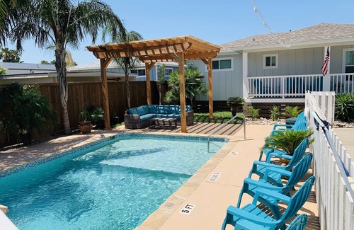 “Pool House" welcome you to enjoy the warmth and sunshine on our beautiful sandy beaches with little town charm. Located right in the heart of Port Aransas in Old Town within walking distance to restaurants, live music, nightlife, and shopping. Professional tropical decor throughout with brand new
