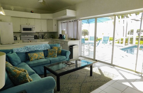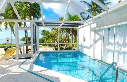 The most private getaway on the island, this end unit condo boasts the best view of Sunset Point. Unwind in your very own heated pool enclosed in a giant, invisible screen accessible from both the living room and bedroom. The disappearing glass doors provide a seamless transition from house to the private pool to a pristine beach complete with coconut palm trees to the crystal-clear, turquoise Caribbean. World-renowned sunsets and sunrises are also part of the package!