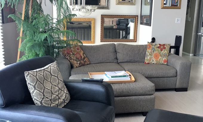 We live in the basement apartment. We are here if you need us, and we respect your privacy. Come to your total relaxation getaway. Large family room with a wood-burning fireplace and a 64" smart TV. Master bedroom has a queen-size bed and a 4-piece bathroom. All bedrooms have 42"smart TVs with new beds. Both bathrooms are newly remodeled and have heated floors. Large eat-in kitchen that is fully stocked with cooking utensils and some basic food. There is an 8-person hot tub, a 20'X50' pool, 3 ponds, and a waterfall, The ski resort bus picks up across the street and Snow Bird is 8 miles up the hill. We are close to all kinds of shopping and restaurants. We are 20 min. to the airport and downtown. We are 45 min. from Park City.