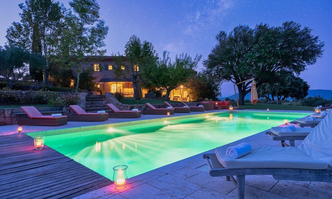 Our stone house, restored with the collaboration of a Belgian decorator, offers you a living area of 880 m2 in a refined decor with generous volume and absolute comfort ... a real invitation to dive into the sweetness of life of southern Provence and summer delights ... The house can also be rented for your private events such as weddings. (We do not offer any event organization services, we only make the domain available)
