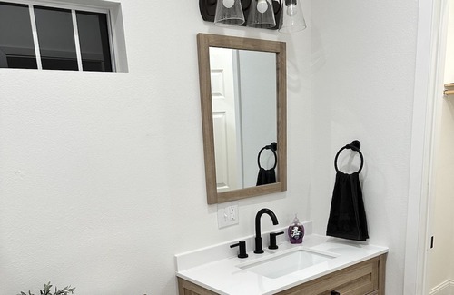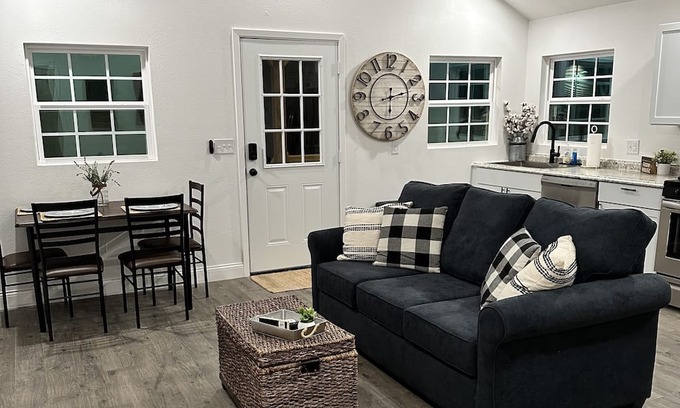 Beautiful and comfortable inside! Nestled among all the trees at the back of our quiet 20 acre property is our 826 sq home. Two bedrooms and two baths, A full kitchen and living room provide all the amenities you’ll need. Enjoy a cup of coffee and the sunrise from the front porch, or just take in the sights and sounds of nature from around the property.