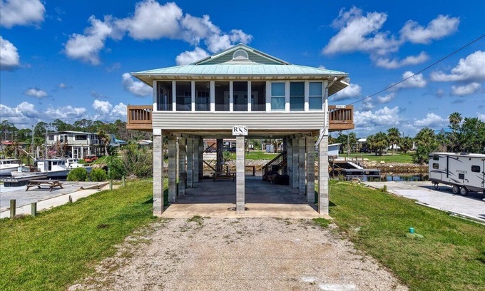*PLEASE NOTE: We are still recovering from Helene so workers may be on & off property during stay!*Relax in this charming 2-bedroom, 1-bath home on a deep-water canal with private boat dock access. Enjoy stunning sunset views from the wraparound porch or spacious sun deck. Fully stocked kitchen, washer/dryer, towels, and an extra futon bed included for your comfort. Perfect for boating, fishing, and peaceful waterfront living. Ice machine provided.