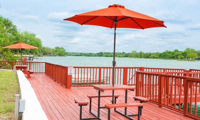 This is an ideal getaway spot! Enjoy your private deck while looking out over the huge red dock and lake. There is also a floating dock for easy access to the water. You can often spot deer and wild turkey on the shoreline across the lake. The free public boat launch is only a block away. The 5,369-acre Hill Country State Natural Area is about 15 minutes away for hiking and cycling.