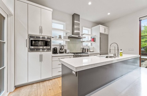 - Upstairs Primary Bedroom: King & 1 Crib (remote control for electronic shades lives on the shelves to the left of the King Bed - please be sure to leave on shelf after each use and prior to departure)