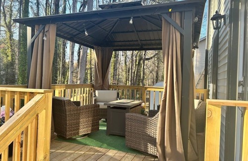 Cozy up around the firepit on the back deck and enjoy the serenity of the back yard where you will see an occasional deer in the woods.