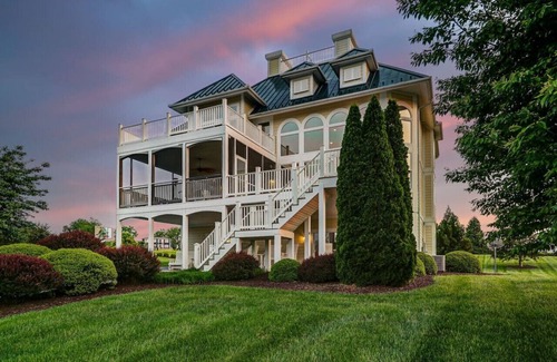 The REGAL features 5 bedrooms with 5 bathrooms, (4 of which are private), Two living rooms, large kitchen, game room, private boathouse, paved driveway with basketball goal, kayaks and a hot tub(available only Sept.-February), private beach area with a wood burning fire pit. The Master Suite is sure to impress with the third level deck accessed only from the suite, extra large space with a two sided gas fireplace that is viewed from the bed or from the bathtub. The suite also features a wet bar with a mini fridge and a coffee maker.