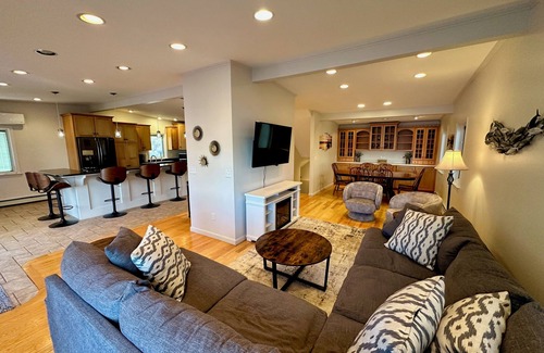 Escape to a stunning retreat on Sebago Lake! This spacious 5-bedroom, 4.5-bathroom home is perfect for large groups, sleeping up to 12 guests. Enjoy cozy evenings by the electric fireplaces or have fun in the game room equipped with a mini bar, foosball table, and ping pong table. The home features a spacious kitchen, perfect for preparing meals and gathering with loved ones. With 50 feet of lakefront, you can indulge in water activities or relax by the firepit. Plus, this pet-friendly home ensures that your furry friends can join in on the fun. Experience the best of Sebago Lake with this exceptional vacation rental!